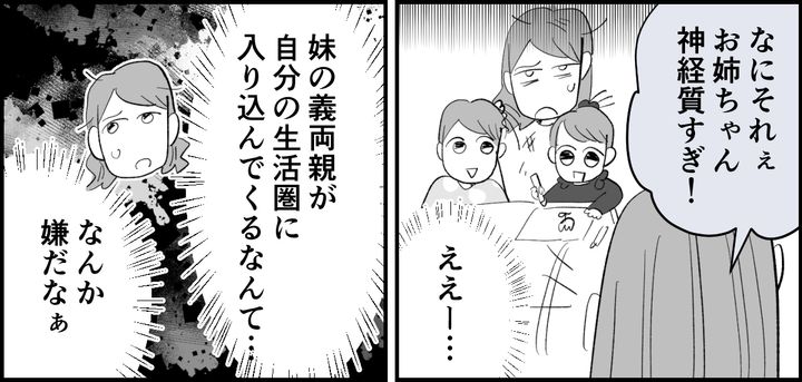 <義両親との距離感>妹の義両親が近所に越してくる!?プライバシー侵害されるかも…【まんが】