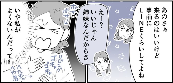 私はムツキ、会社員です。父はすでに亡くなっており、母の強い希望を受けて同居しています。快く同居をOKしてくれた夫のシンジには感謝しかありません。母とはつかず離れずでほどよい距離感です。実家から徒歩5分の場所には妹(エミリ)一家も住んでおり、良好な関係を築いています。私が身軽ということもあり、週に一度は姪っ子たちの世話を手伝い、何かあるたびに、頼まれれば快く駆けつけてもいました。さてそんなある日、エミリの義両親が近くに引っ越してくるという話が持ち上がったのでした。