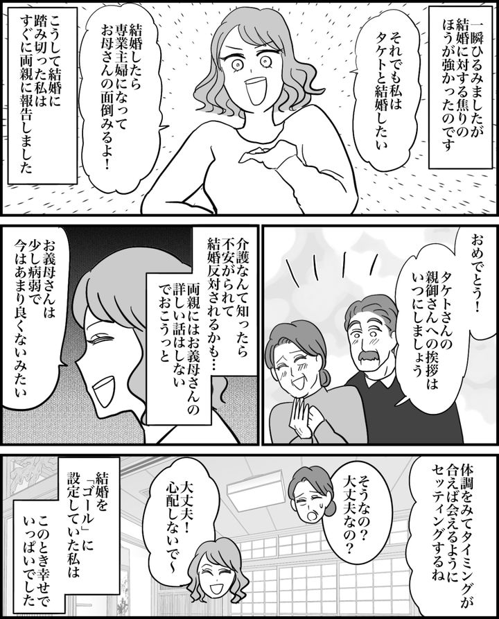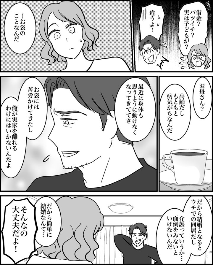 タケトが結婚に躊躇するのは、病気がちで日常的にサポートが必要なお母さんのことがあるからのようです。