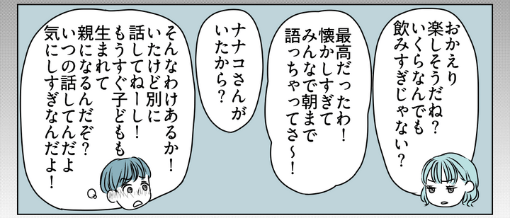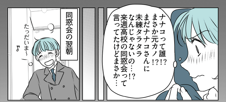 同窓会の翌朝に帰宅した夫はとてもテンションが高く……。私は「元カノに会ったから?」と勘ぐってしまいました。