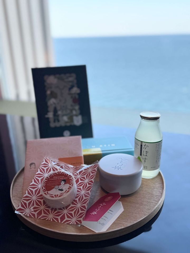 界ブランドの魅力を語るうえで欠かせないのが、その土地ならではの個性を映し出す客室「ご当地部屋」。ここ「界 別府」では、血の池地獄から着想を得た柿渋色や、大分県(旧豊後国)発祥の伝統的な絞り技法「豊後絞り(ぶんごしぼり)」が客室を彩ります。大分県の文化や伝統工芸に触れながらそっとひと息。なんて贅沢な時間です♡