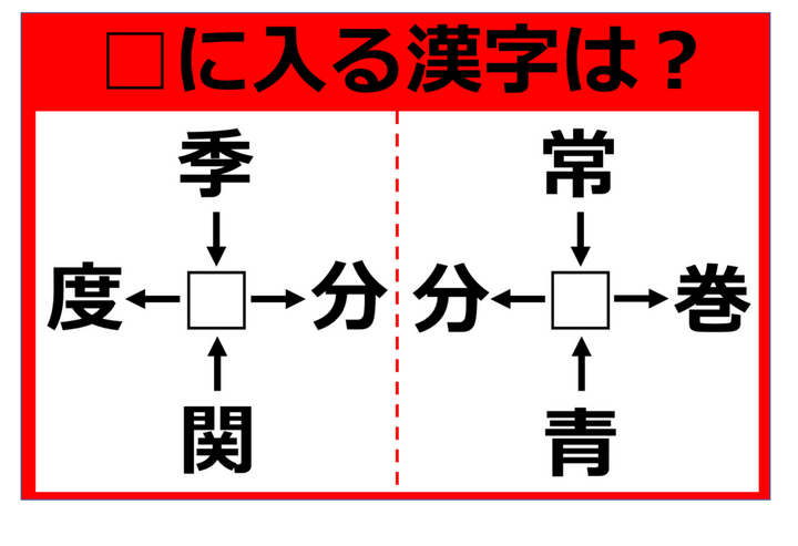 【漢字パズル】季□、□分、関□、□度 この□に入る漢字は何!?