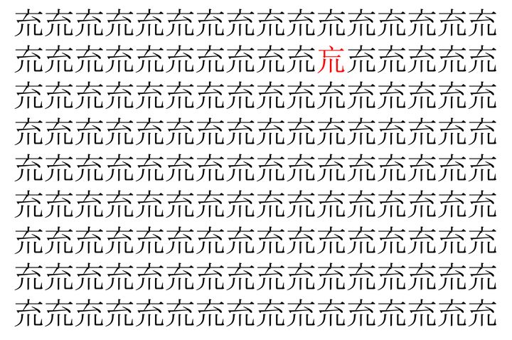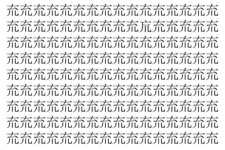 2. 【脳トレ】「㐬」の中に紛れて1つ違う文字がある!?あなたは何秒で探し出せるかな??【違う文字を探せ!】