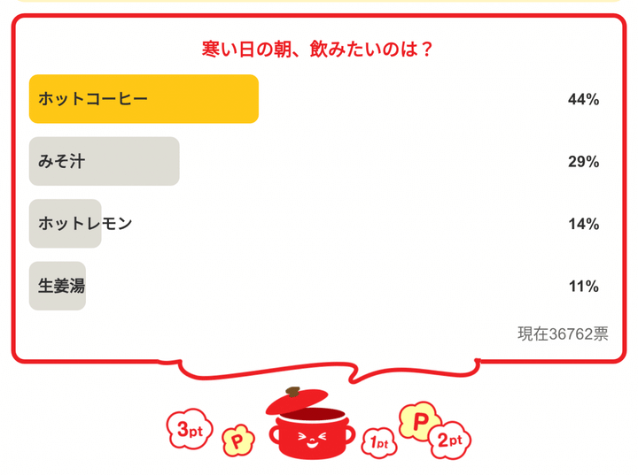 ・「寒い日の朝、飲みたいのは?」の結果は…
