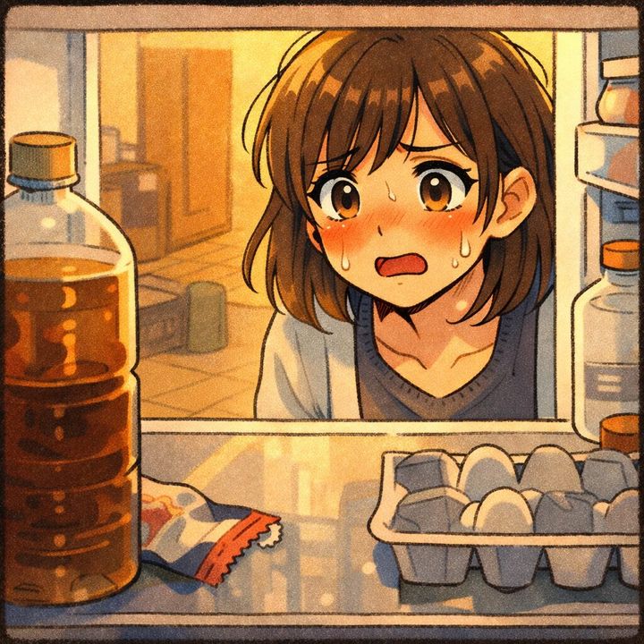 喉がカラカラだったので、出発前に買っておいたジュースを飲もうと冷蔵庫を開けた時、全身の血の気が引くのを感じました。