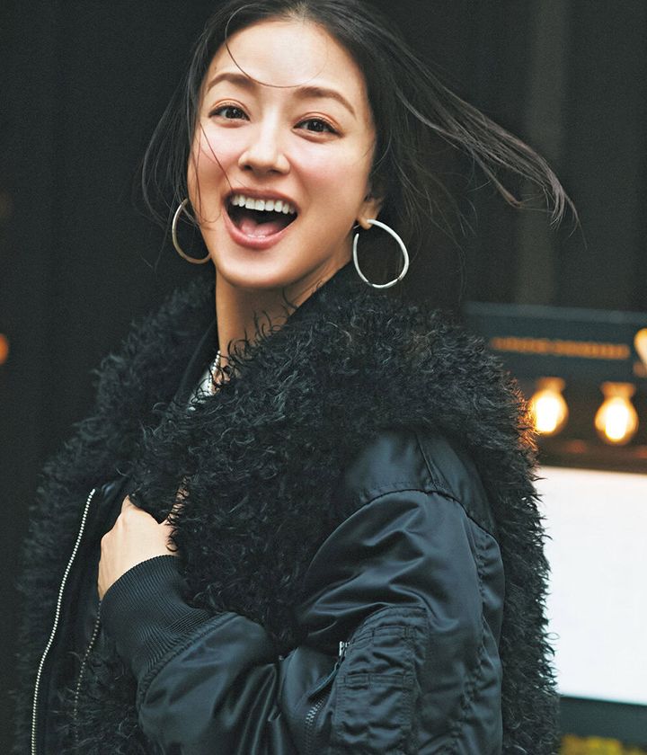 ボアベスト¥22,000(メゾンスペシャル/メゾンスペシャル 青山店)MA-1¥88,000(ハイク/ボウルズ)カットソー¥14,300(ウィム ガゼット/ウィム ガゼット 玉川髙島屋S・C店)スカート¥39,600(エムティーモデリスト/ロンハーマン)バッグ¥82,500(メゾン カナウ/ヤマニ)ブーツ¥110,000(ネブローニ)ピアス¥26,400(ブランイリス/ブランイリス トーキョー)ネックレス¥50,820(バルブス/ズットホリック)タイツ¥1,650(靴下屋/タビオ)