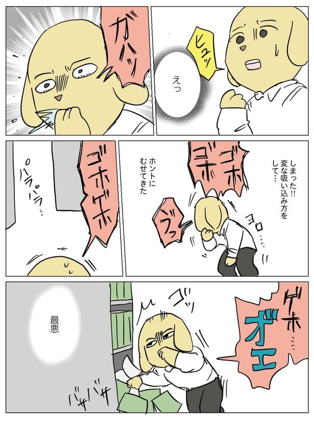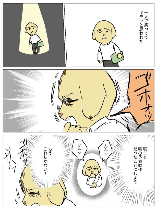 3. 資料室でひとり思い出し笑いをしていたら、誰かに聞かれた!? 必死に咳でごまかすと…/働く!くよくよ犬㊴