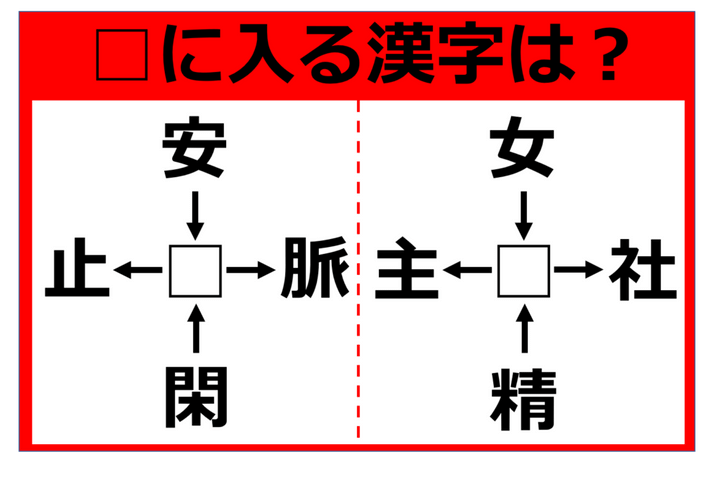 3. 【漢字クロスワードパズル】安□、□脈、閑□、□止 □に入る漢字は何!?