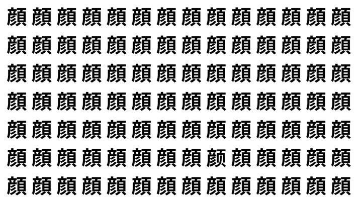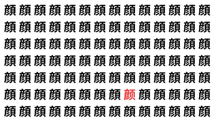 たくさんの「顔」の中に、よく似た別の漢字が1文字だけ隠れています。