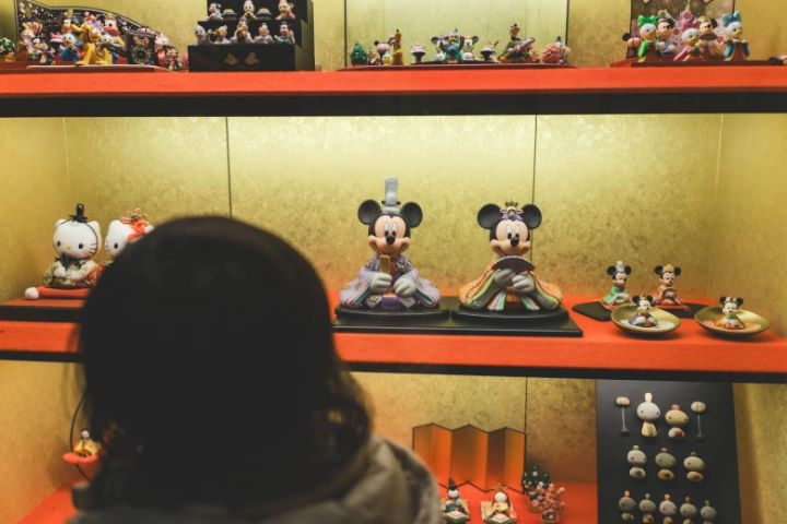 娘は自分のお気に入りのひな人形を見つけて、目を輝かせていました♡