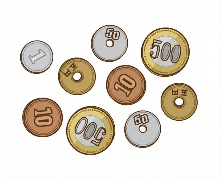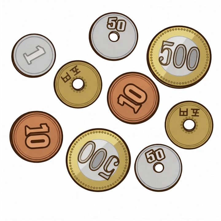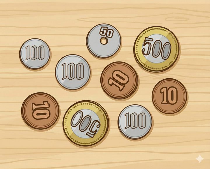 こちらの画像の小銭の合計金額を計算してください。バラバラに置かれた小銭を、正確に数えられますか?
