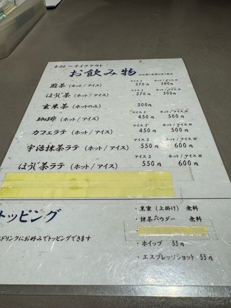 ドリンクメニューも豊富で、コーヒーのほかに抹茶やほうじ茶ラテなど、和の味わいを楽しめるのも嬉しいポイント。おにぎりと味噌汁に、ドリンクを添えてゆったり過ごすのもおすすめです。