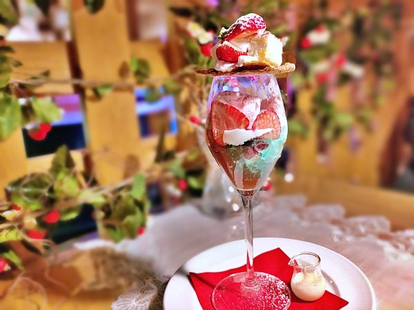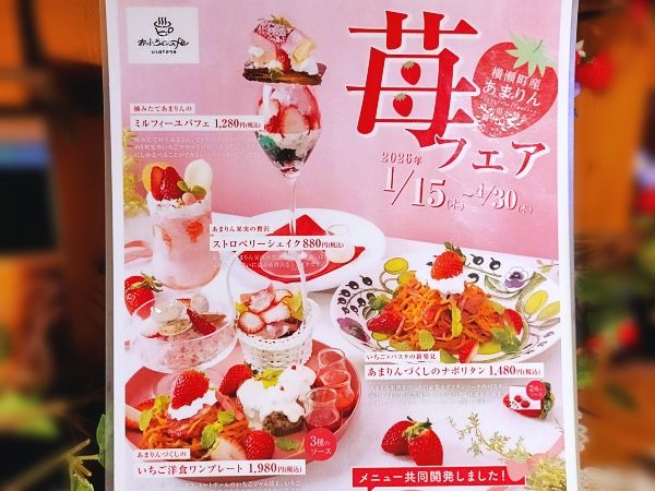 そこで「おふろcafé utatane」では、昨年に続き今年も「あまりん」フェアを4月30日まで開催予定。 提供メニューは ・あまりんづくしのナポリタン 1,480円 ・摘みたてあまりんのミルフィーユパフェ 1,280円 ・あまりん果肉の贅沢ストロベリーシェイク 880円 ・あまりんづくしのいちご洋食ワンプレート 1,980円