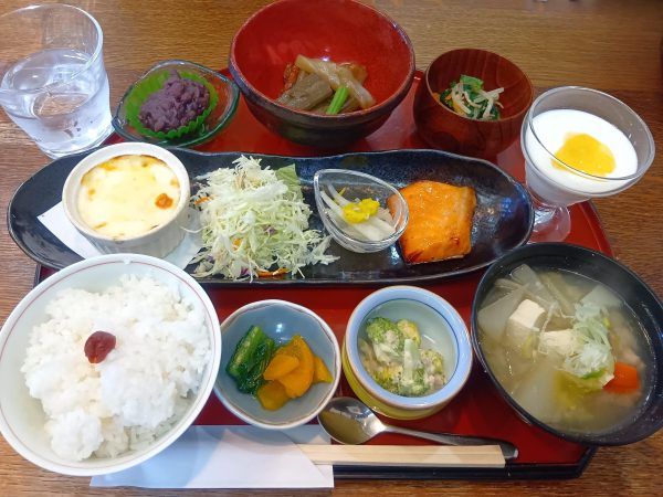 こちらのお店、カフェのイメージを覆す充実したランチがあるんです! なにかというと、和定食やカツカレーランチ、キングサーモン定食などしっかりとした和膳を楽しめるんです♪ 意表を突かれて驚きですよね! おすすめの「栄楽ランチ」をオーダーし、友人達と語らいながら待っていると・・