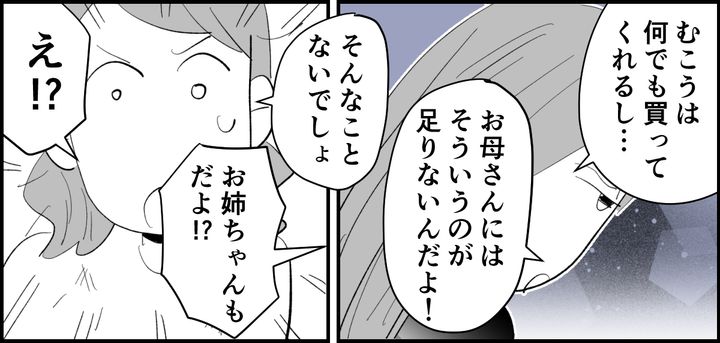 エミリは義両親が孫に会いたがり、何でも買ってくれることに対し、母や私は頼まなければ何もしてくれないと不満をぶつけてきたのです。