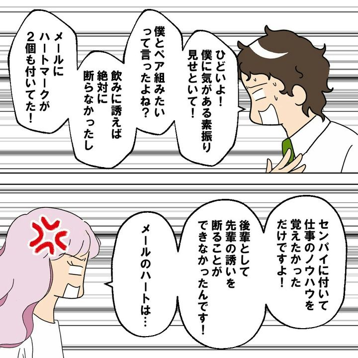ですがそれは、大きな勘違いでした。後輩は、ただただ職場の先輩として接していただけだったのです。