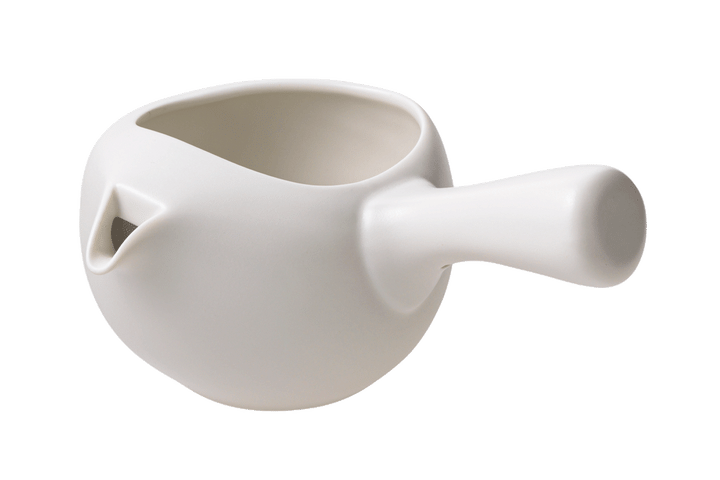 東京都台東区にある日本茶専門店〈ノーム ティーハウス〉が提案する常滑焼の急須。その名も初心者向けに作られた「はじめての茶器」。蓋がなく上部が大きく開いている構造によって、茶葉が膨らんでいく様子をゆっくり楽むことができる。また、洗いやすくお手入れがしやすいという利点も。小さめの茶杯なら5、6人分のお茶を淹れられるサイズ。ぽってりと厚みのある形状は、優雅なティータイムを演出してくれるはず。
