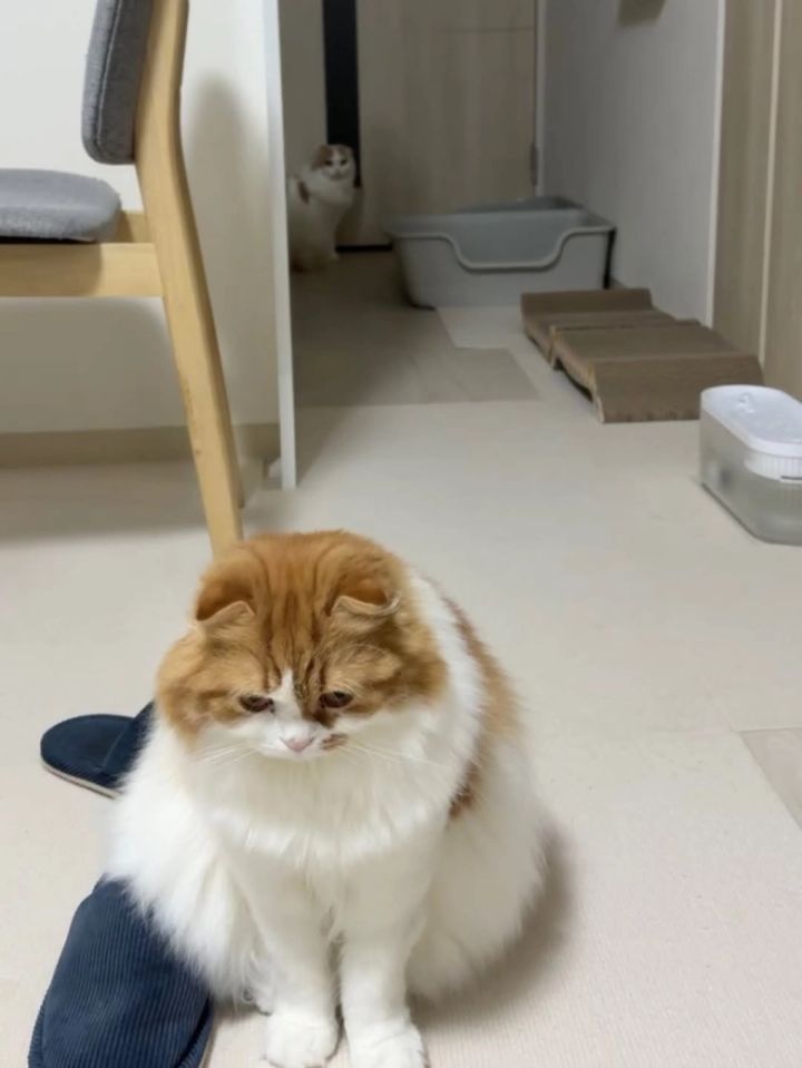 同じスコティッシュフォールドの兄弟猫『ガブ』ちゃんのたれ目に癒されるな~と見ていたら…その背後には『ラテ』ちゃんが(笑)。送られている視線は監視?見守り?それともLOVEビーム?絶妙な距離感とその兄弟愛に癒されます。