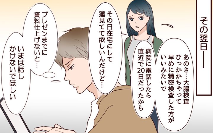 手を抜けない仕事の対応中で、翌日に相談された検査の日程調整についても翠を気遣う余裕がまったく持てず、翠がどう思っているかなんて気にもとめていませんでした。