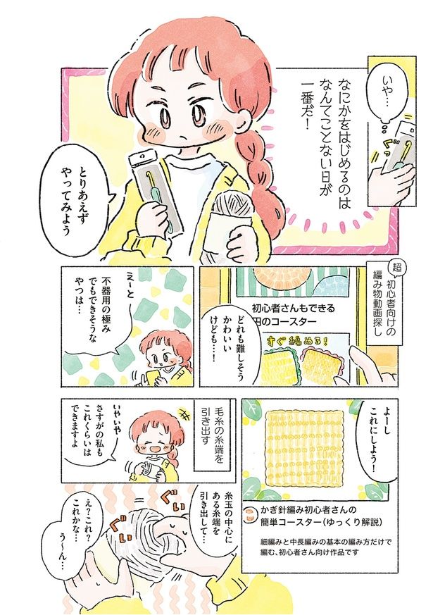 毛糸みたいにカラフルな編み物入門コミックエッセイ『あめばあむほど好きになる かぎ針編みはじめました』をご紹介。著者で漫画家のまつざきしおりさんは、編み物にあこがれる気持ちを持ちつつも、不器用だし、魔法陣のような編み図の解読なんて無理…とあきらめていたそう。しかし、とあるきっかけで編み物を始めることに。