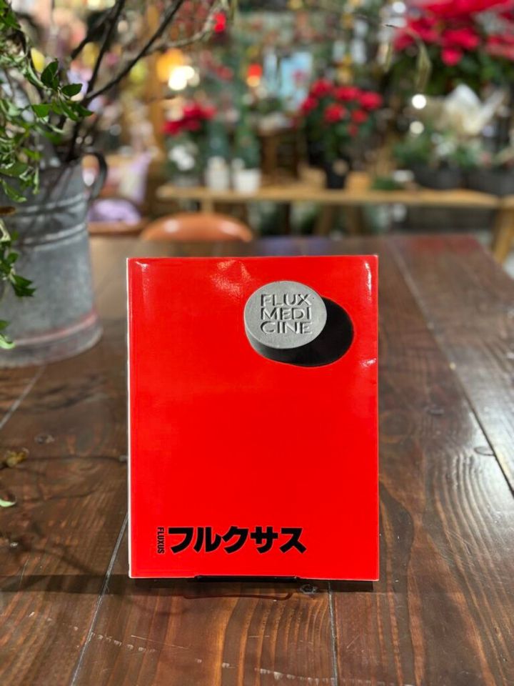 この本との出合いは、僕が本屋を開業して間もない頃に行った「TOKYO ART BOOK FAIR」でのこと。多くの人で賑わう中、毒々しい赤色の本に目が止まった。その赤色に『FLUX MEDICINE』と刻印された錠剤と『FLUXUS フルクサス』と黒字の印字が施された装丁。その妖しげなインパクトに惹かれ、僕はこのブースの店主に声をかけてみた。