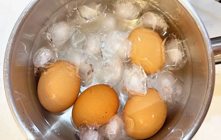 13分経ったら、氷水に入れて冷やしてください。