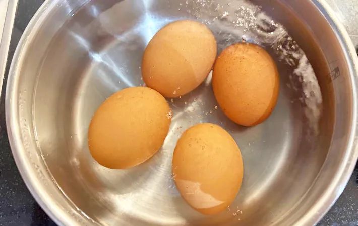 鍋にたっぷりの湯を沸かし、沸騰したら火を止め、卵を入れて13分放置するだけでOKです。