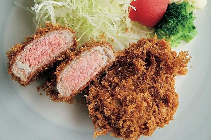 ハンバーグ、ステーキ、グラタンなど、古賀達彦シェフの完璧な火入れと、丁寧な仕事が行き届いたソースにファンが多い洋食店。エビフライをはじめとした揚げ物も豊富で、ラムカツはラム肉特有の香りと風味を生かしつつ、軽やかでザクッとした衣の食感が絶妙にマッチする。