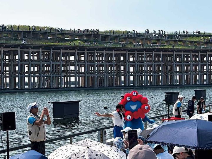 ミャクミャクの登場に「子どもに見せたかった」と我に返ってしまい、子どもが選ばないパビリオン巡りに。