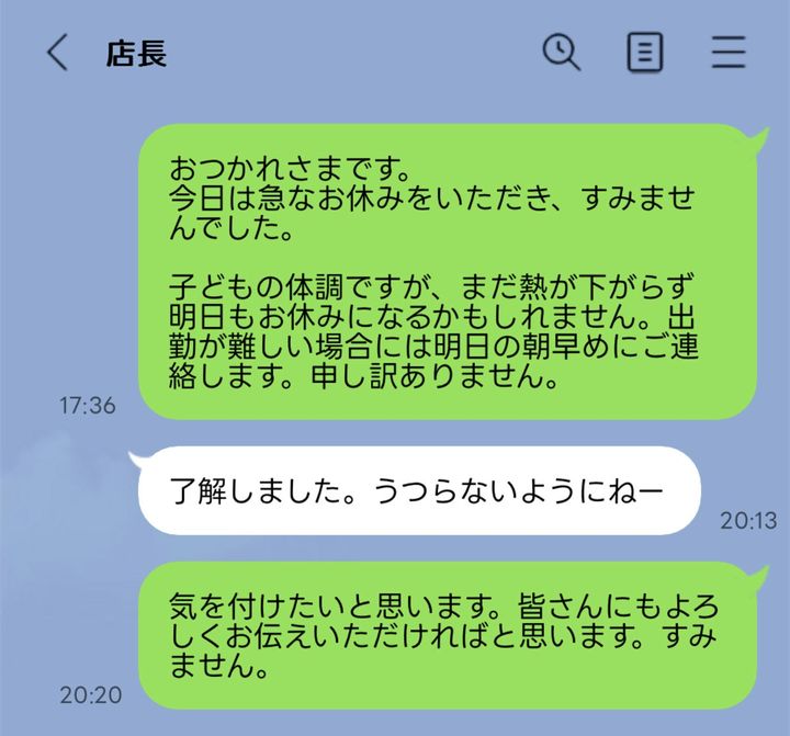 3. 「了解ー」の裏にある本音にビクビク。急な発熱、欠勤、そして職場から投げられるトゲのある言葉