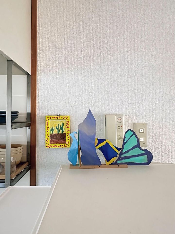自分軸で選んだ部屋のアートは、子どもたちの作品。つくった当時の思い出も蘇るので、自宅をパワースポットと考える私には欠かせない大切なものです。