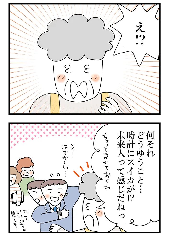 80年以上前に生まれたヨネ子は、電子マネーについてはかろうじて理解していても、スマートウォッチの存在は知らなかったようです…。