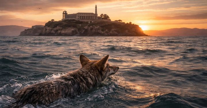 米国サンフランシスコ本土から冷たく荒れた海を泳ぎ切り、アルカトラズ島にたどり着いたのは、一頭の野生のコヨーテでした。