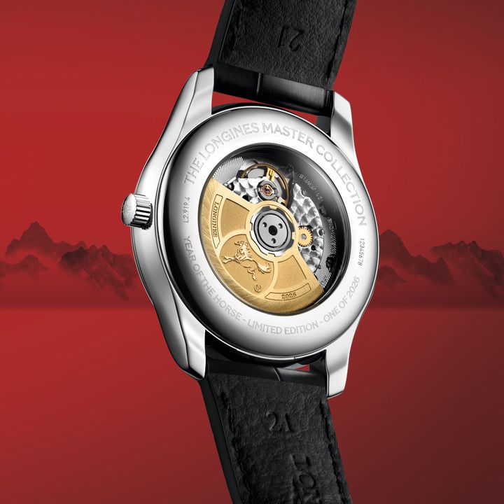 会場では、午(うま)年、そして馬術界との絆を祝して特別限定モデル“ロンジン マスターコレクション イヤー・オブ・ザ・ホース”も発表。中国・重慶のピオン・アートミュージアムとタッグを組み、中国画家ピオン・シューの名作『奔馬図』モチーフが時計の裏側から見える自動巻きムーブメントのローターに彫刻され、手首の動きに合わせて、まるで馬が駆けるように回転する。