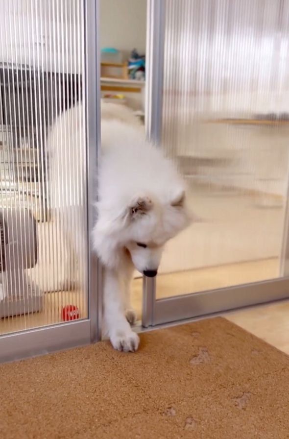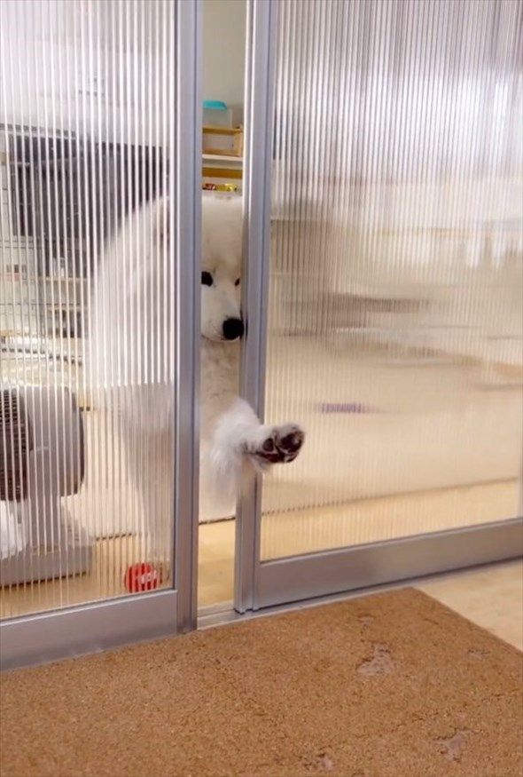 閉じられている仕切りを器用に開けて、部屋に入ってきたサモエド。 その一連の動きが愛らしいと話題になっています!