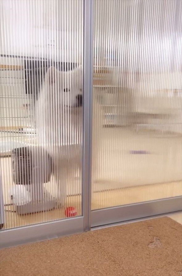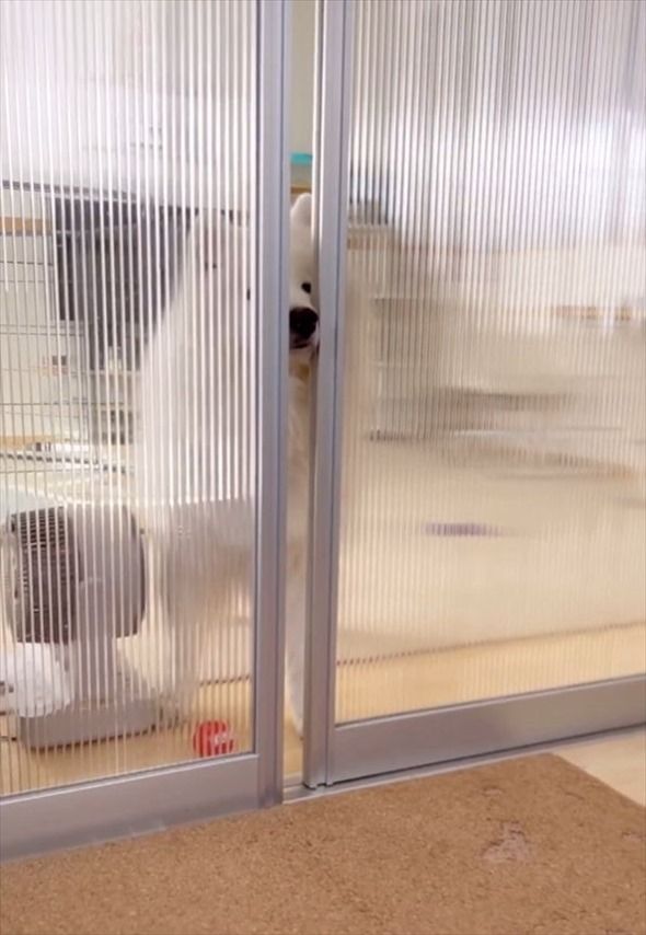 仕切りを開けて部屋を移動するサモエドのダッツくん。 その一連の様子は、こちらの投稿内の動画からご覧いただけます。