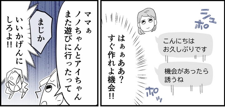 私はアミ(32)。娘はアイ(小1)です。もともと私は4人グループのママ友がいましたが、カンナさん(34)を筆頭に嫌がらせをされて、嫌な思いをしました。前まではそれでもアイのためと思って頑張ってすがりついていましたが、騙されて引きうけた役員でママ友が増え、無事グループから離れることができました。私もアイも今では楽しく、他のママ友とお付き合いをしています。しかし今になってカンナさんが連絡をよこしてきたのです。