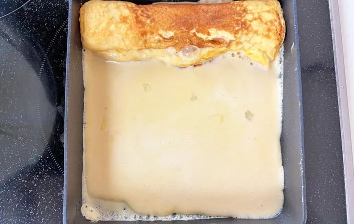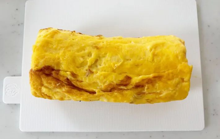 あとは、普段の卵焼き同様に、玉子焼き器でくるくると巻きながら焼いていくだけ。