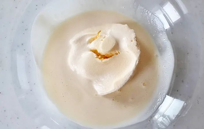 まずは、耐熱ボウルに『明治 エッセル スーパーカップ 超バニラ』を入れ、600Wの電子レンジで約1分加熱して溶かしてください。
