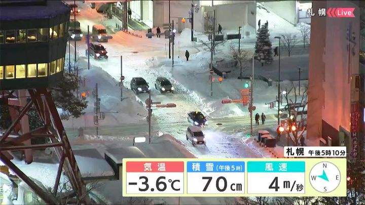 午後4時までの24時間に降った雪の量は、アメダスの観測地点では小樽が最も多く37センチ。石狩北部の新篠津村では昨夜、記録的な大雪となり、31センチでした。札幌は17センチでしたが、市内でも北区や東区で局地的な大雪になりました。今夜は札幌や小樽の雪は落ち着きそうです。