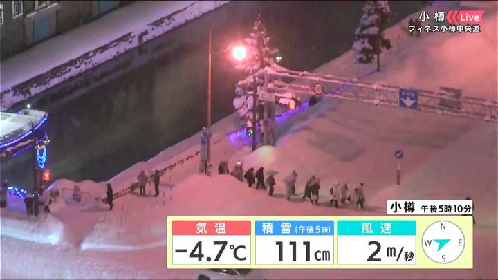 小樽の積雪は111センチ。この冬初めて積雪が1メートルを超えています。