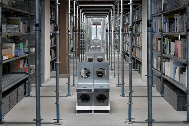 「GHOST IN THE SHELL」は、50脚の椅子によるインスタレーション。