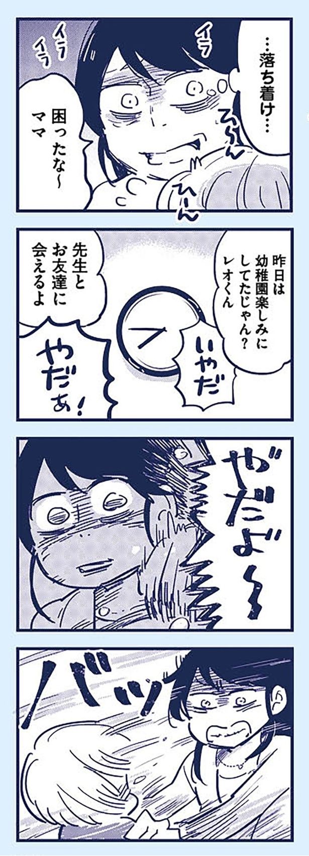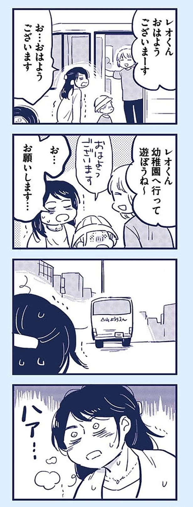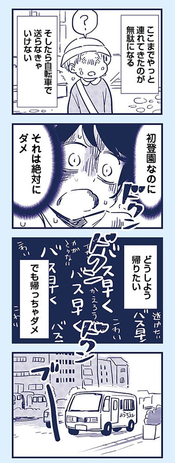 3. 登園初日、グズる息子にカッとなる母。なんとかバス停まで連れてきたけれど、動悸が止まらない/これって虐待ですか⑥