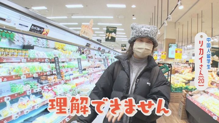 番組スタッフ:「HBCテレビのものなんですけど…。」リカイさん:「私は日本人じゃないです。中国です。9月に初めて日本に来た」