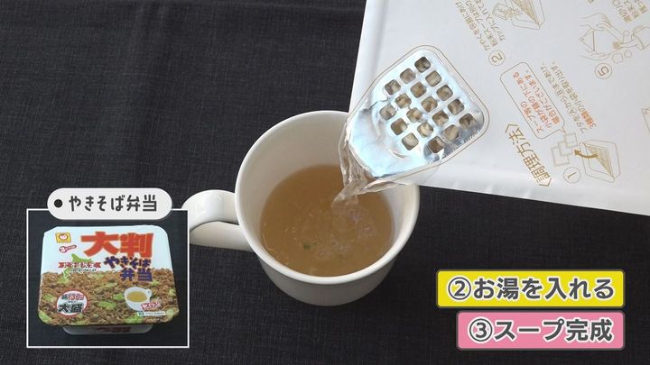 後日、焼きそば弁当のスープを飲んだところ『塩味があって美味しかったです』と感動していました!
