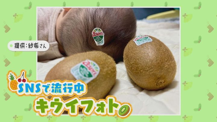 紗希さん:「子どもの頭にキウイのシールを貼って果物と一緒に撮ろうかなと思ってキウイを」