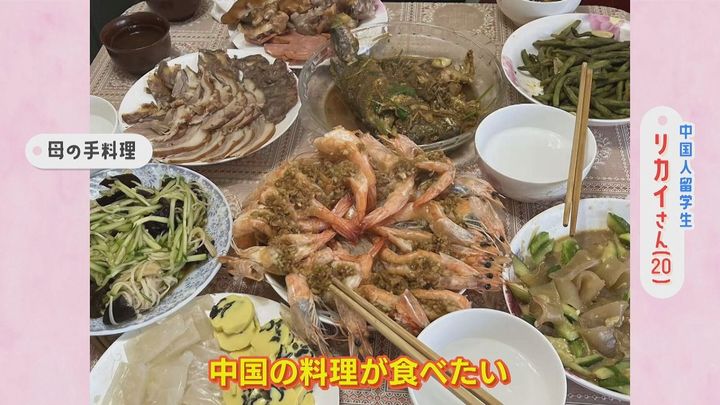 番組スタッフ:「お母さんの料理食べたくなったりする?」リカイさん:「はい。作り方や材料も全部知らない。中国でいつも母とおばあちゃんが作るから、私は食べるだけ。中国の料理食べたい」