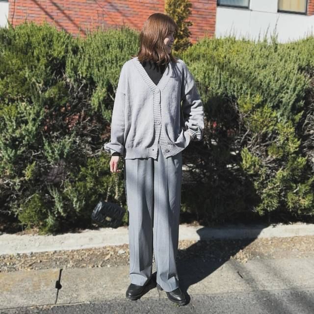 グレー色でもスナップのようなシャギーやモヘアのニットカーディガンなら軽やかで華やいだ印象に。女性らしくて落ち着いたスタイルに決まります。