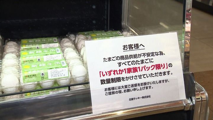 供給量も少なく、これまで「1人1パック」買うことができた卵を、「1家族1パック」に制限しています。