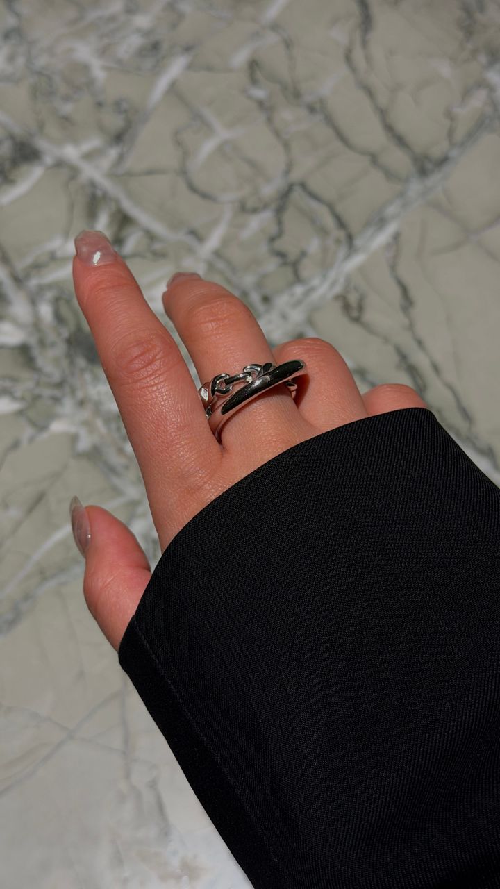 プレーンなラインとブランドの象徴“X”モチーフのチェーンを組み合わせた2連デザインが、重ね付けのような立体感と存在感を際立たせてくれます。私は親指や中指にもゆったり着けられるサイズ17を選びました♡
